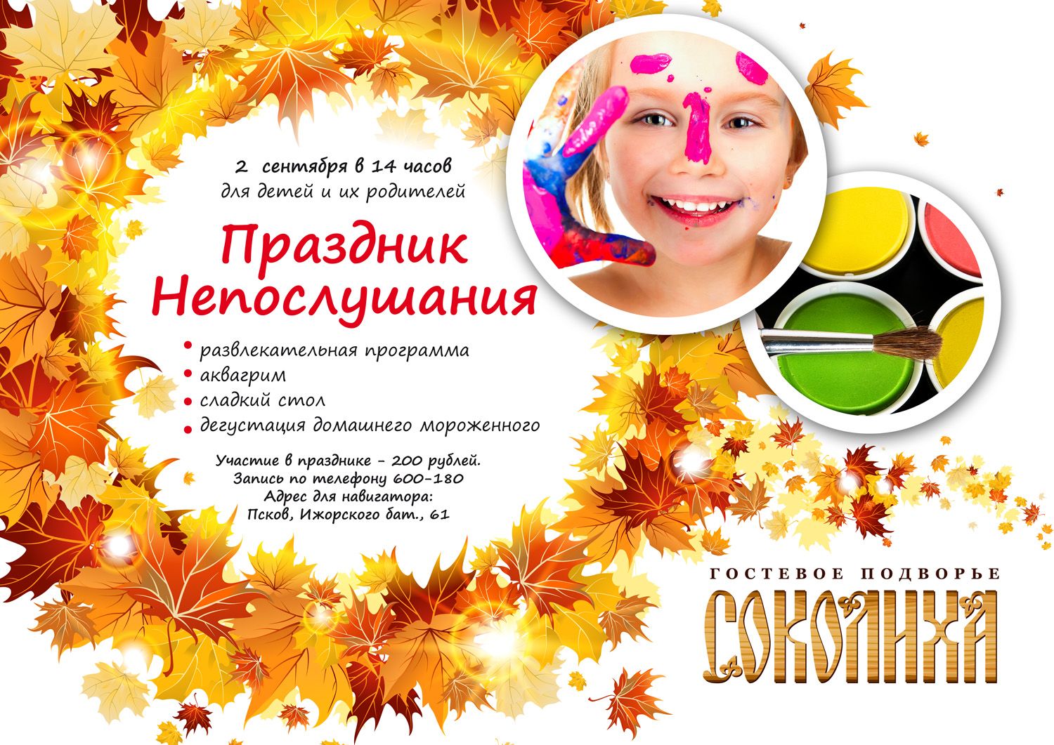 на ПРАЗДНИК НЕПОСЛУШАНИЯ, который состоится 2 сентября в 14 часов.